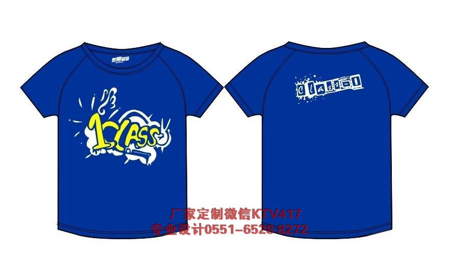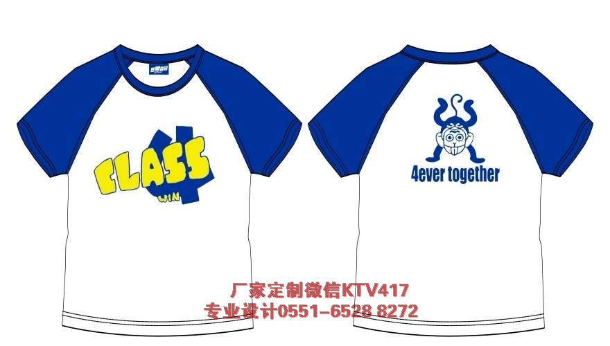 一班班級文化衫圖片,這款是4班的班級服裝,采用的是圓領插肩袖文化衫,前面印的是CLASS 4,后面印的是小猴子。
