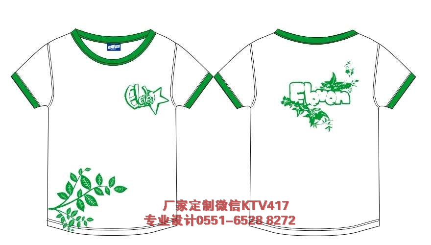 壹班班衫圖案,采用的是綠色鑲邊文化衫,正面是綠色的圖案,后面是花。