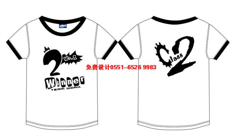 這款班服采用的白色鑲黑邊底衫,前面印WINNER,2,NO.1后背印刷黑色的CLASS2。霸氣!