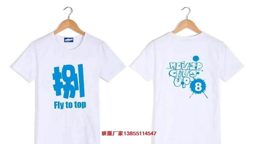 8班班級服裝圖案,8班班級服裝LOGO,此款班服8班的,采用圓領(lǐng)的短袖文化衫,前面印刷藍(lán)色的大寫捌為大圖案,下面是FIY TO TOP,后面是英文字母GIVP UP 8,其中8為圖案鏤空設(shè)計。