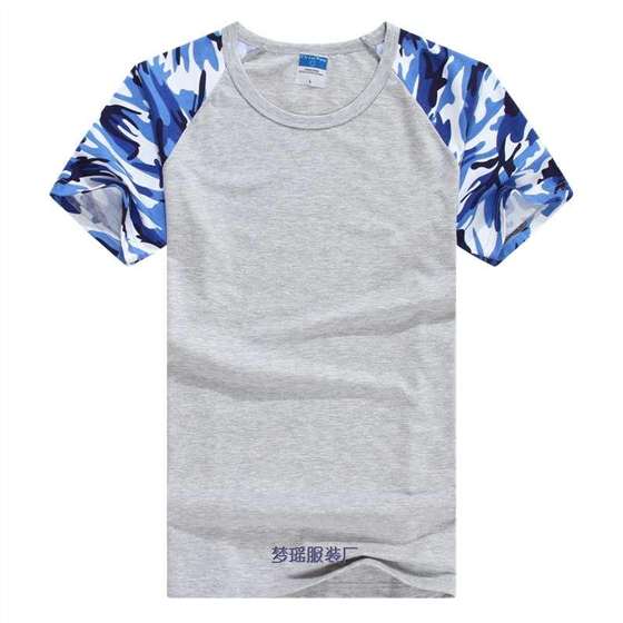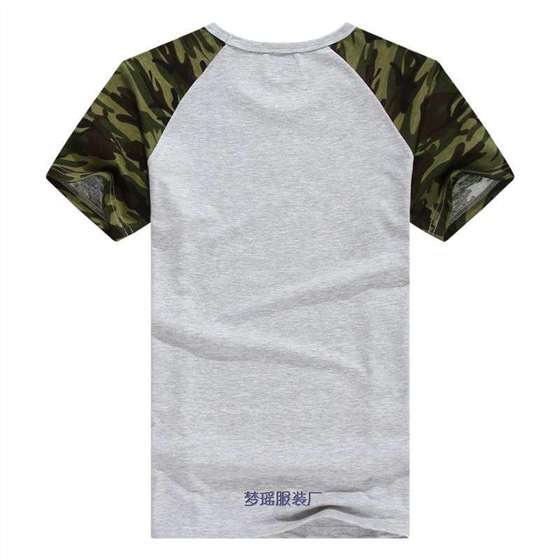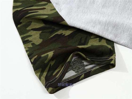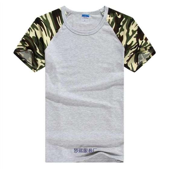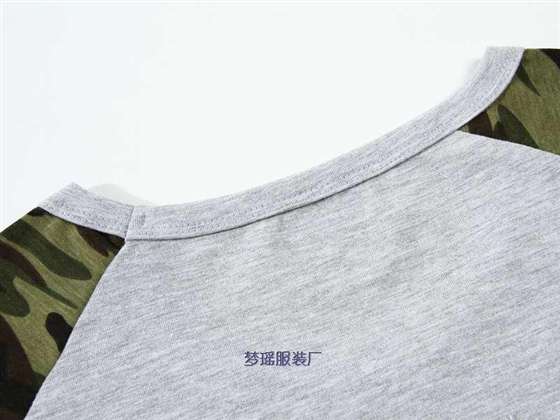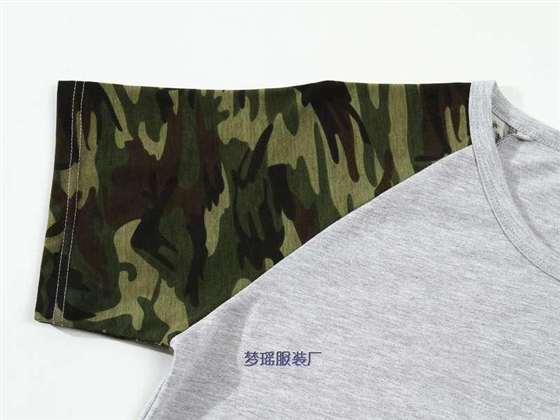 灰色底衫迷彩插肩文化衫,灰色底衫迷彩撞色文化衫