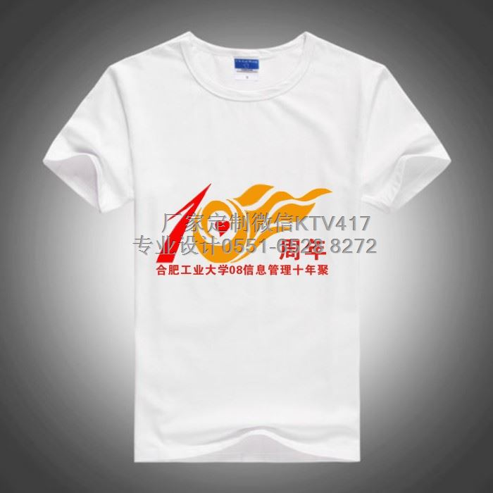 白色圓領純棉文化衫,這款畢業10年圖案采用的設計 理念是,要多彩的,不計成本。主題采用的是菱形多色填充。