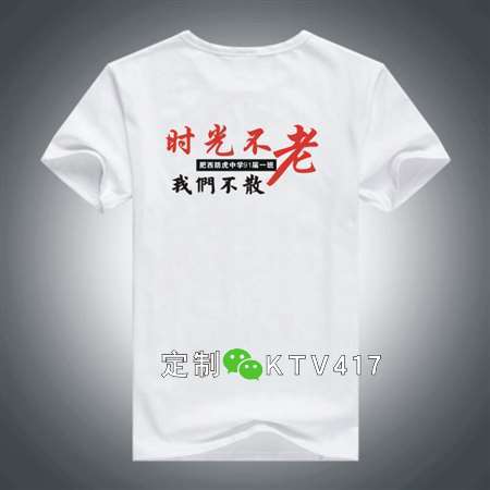 這款 同學(xué)聚會(huì)衣服后面圖案是時(shí)光不老,我們不散圖案主題,圖案中間是XX中學(xué)XX屆班級(jí)名