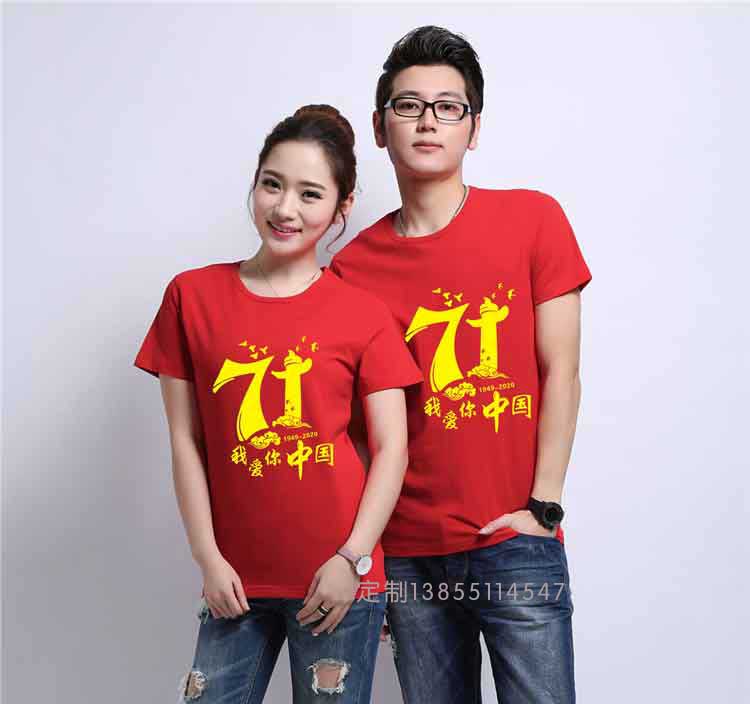 愛國文化衫圖案,純棉國慶T恤定制,71周年紀念衫批發,國慶愛國T恤定做