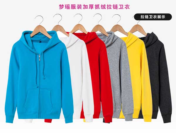 衛衣款式有:圓領衛衣,翻領衛衣,開衫衛衣,拉鏈衛衣,套頭衛衣等。衛衣顏色有紅色,白色,黃色,藍色,灰色,黑色,橙色等