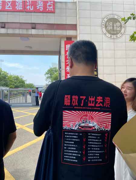 昨天也就是8號(hào),2021年高考安徽考區(qū),下午在經(jīng)開區(qū)的一個(gè)考場門口,筆者發(fā)現(xiàn)一家長,身穿出去浪黑色圓領(lǐng)T恤,