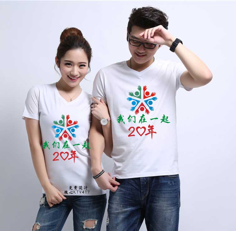 圓領素色做的衣服同學們做的最多,簡單大方,簡潔端正。一般都是白色的衣服,紅色衣服,白色的衣服同學們穿著顯白,年齡大的穿著也顯年輕,印字明顯。紅色對國人來說,是喜慶的顏色,可活躍現場聚會氣氛,紅紅火火,俗稱中國紅。紅衣服印刷黃色的圖案,很喜慶。聚會本身就是一件喜慶的事。